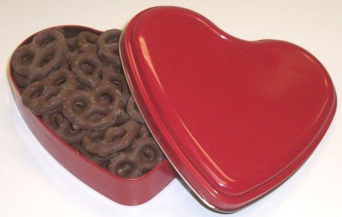 Scott's Cakes Chocolate Covered Pretzels in a Heart Shape Tin Best
